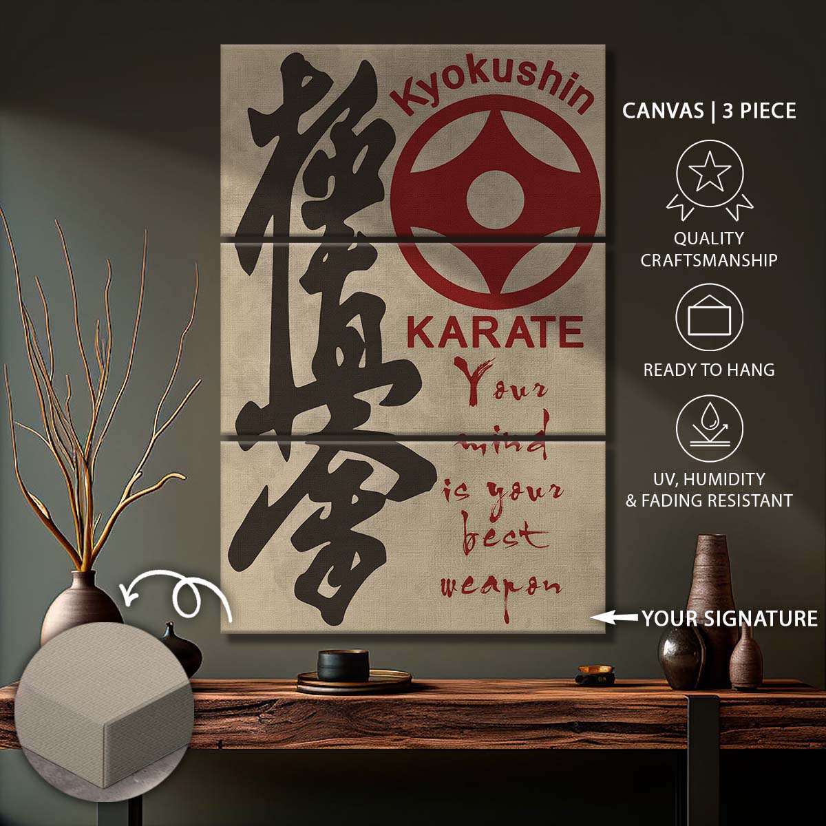 Karate - 3 Piece Wall Art - KA009 - Your Mind Is Your Best Weapon - Kyokushin Karate - Karate Canvas